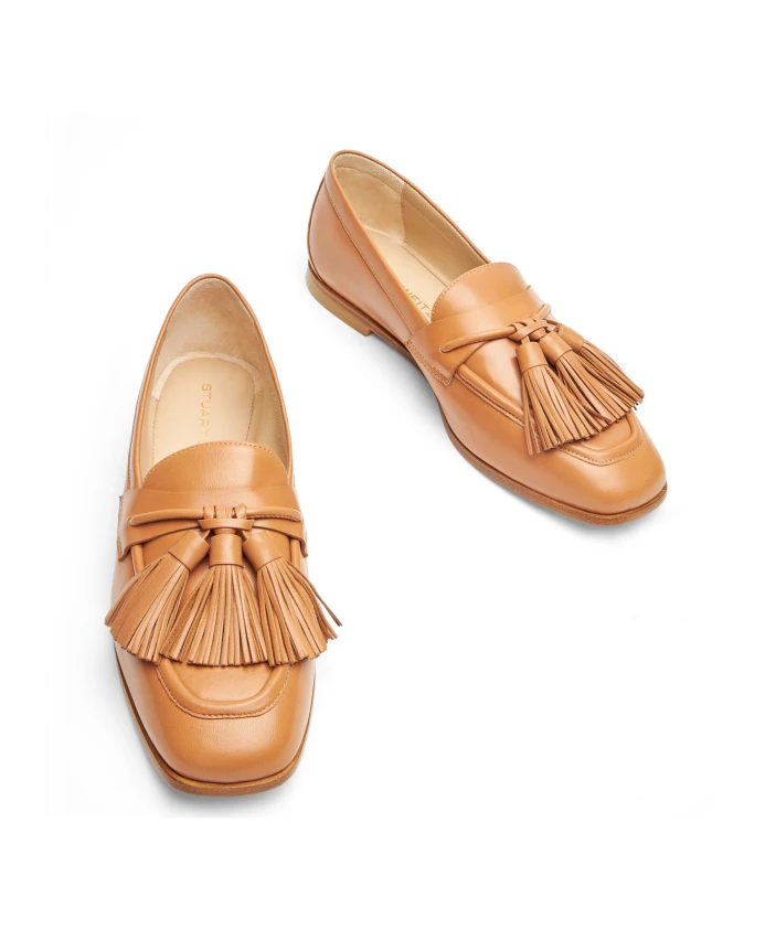 Лоферы с кисточками и миндалевидным носком Stuart Weitzman, бежевый
