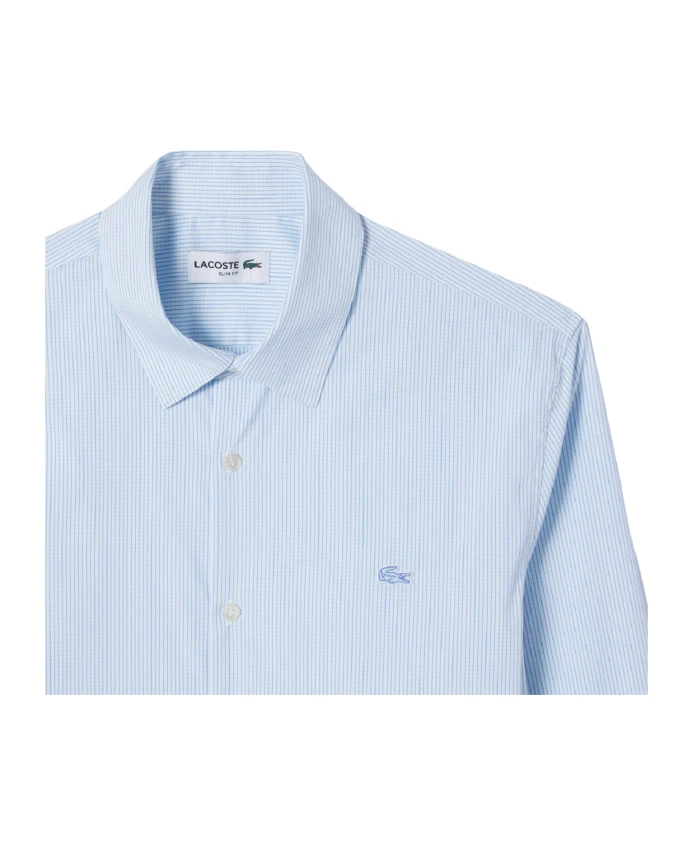 Подчеркните свой стиль с помощью этой эластичной мужской рубашки Lacoste. Приталенная рубашка с французским воротником с поддержкой шеи и перламутровыми пуговицами делает эту рубашку стильной и удобной. Вышитый логотип крокодила на груди добавляет изысканности. Эта рубашка из эластичного хлопкового поплина идеально подходит для любого повседневного случая.