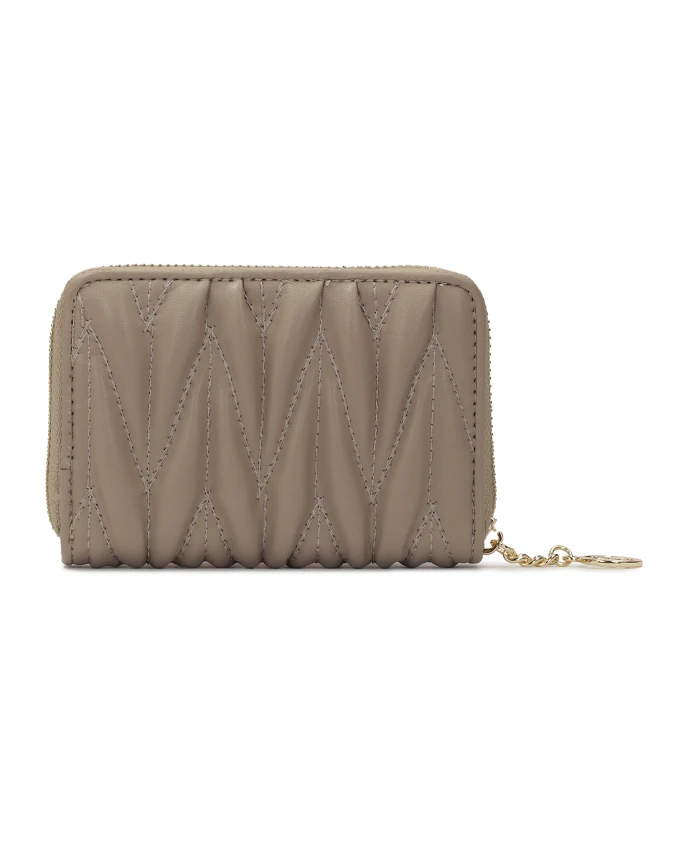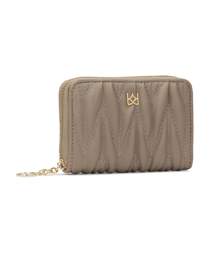 Изготовленный из высококачественной натуральной кожи темно-серого цвета, кошелек излучает утонченную роскошь благодаря стеганой поверхности, которая не только добавляет глубины и текстуры, но также делает кошелек более прочным и долговечным при повседневном использовании. Небольшой размер этого кошелька делает его чрезвычайно практичным и портативным, он идеально подходит для ношения в небольших сумочках или в качестве элегантного дополнения к вечернему наряду. Застегивается на прочную молнию, украшенную фирменной монограммой Kazar, которая является ярким символом бренда и подчеркивает его эксклюзивный характер. Внутри кошелька расположены тщательно продуманные отделения для карточек и документов, а также надежный карман для мелочи, что делает его не только стильным, но и чрезвычайно функциональным.
