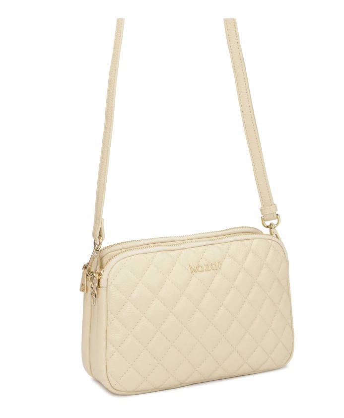 Маленькая сумочка со стеганым рисунком на кожаном ремешке. Kazar, бежевый