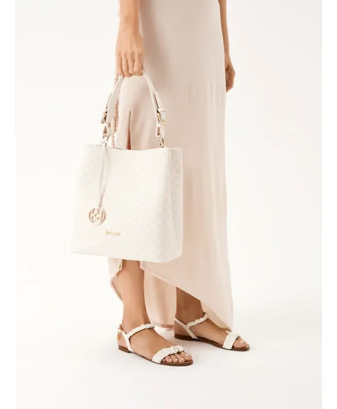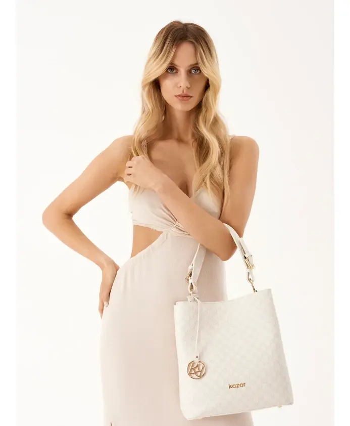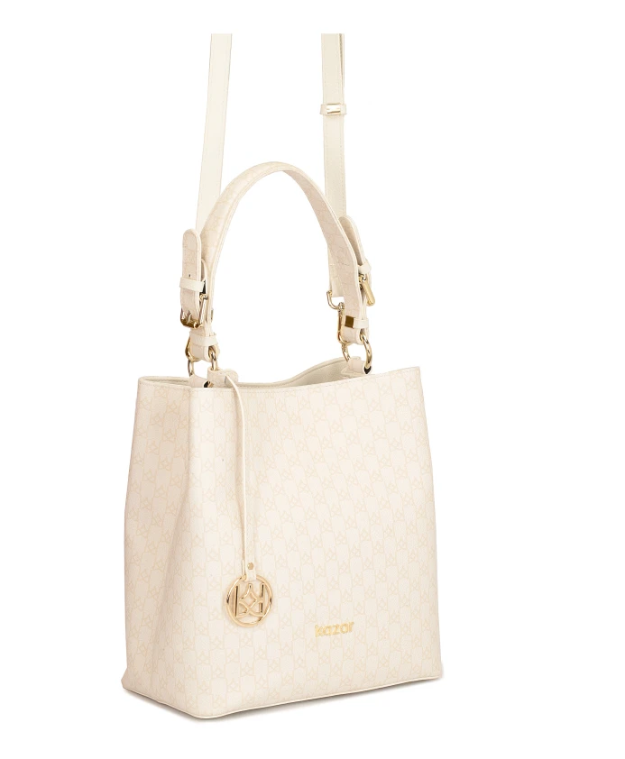 Улучшите свой повседневный стиль с помощью этой практичной и элегантной женской сумки от Kazar. Эта сумка из высококачественной зернистой кожи шикарного кремового оттенка с нежным бежевым принтом идеально подойдет для учебы, работы или шоппинга. Просторное внутреннее пространство с отделениями обеспечивает функциональность, а очаровательная золотая этикетка с монограммой Kazar подчеркивает элегантный характер сумки. Имеет 3 отделения, несколько карманов, металлические ножки и регулируемую ручку. Незаменимый аксессуар современной женщины.