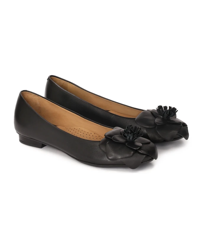 Вечные черные балетки из высококачественной лицевой кожи — это сочетание классического дизайна и современных решений, которые непременно понравятся женщинам, ценящим стиль и комфорт. Кожаная аппликация в виде цветка сверху придает туфлям утонченность и изысканность, что делает их идеальным выбором для самых разных случаев: от повседневных встреч до более официальных мероприятий. Удобная стелька обеспечивает отличную посадку и амортизацию, благодаря чему прогулка в этих балетках доставляет удовольствие в течение всего дня. Эти черные балетки сочетают в себе превосходное качество изготовления, комфорт и оригинальный дизайн, что делает их не только уникальным предметом гардероба, но и инвестицией в стиль и комфорт. Благодаря им каждая женщина может чувствовать себя уверенно и красиво, выглядеть стильно и элегантно. Балетки оснащены контурной перфорированной комфортной стелькой из полуанилиновой козьей кожи, отличающейся отличным впитыванием влаги и повышенной воздухопроницаемостью.