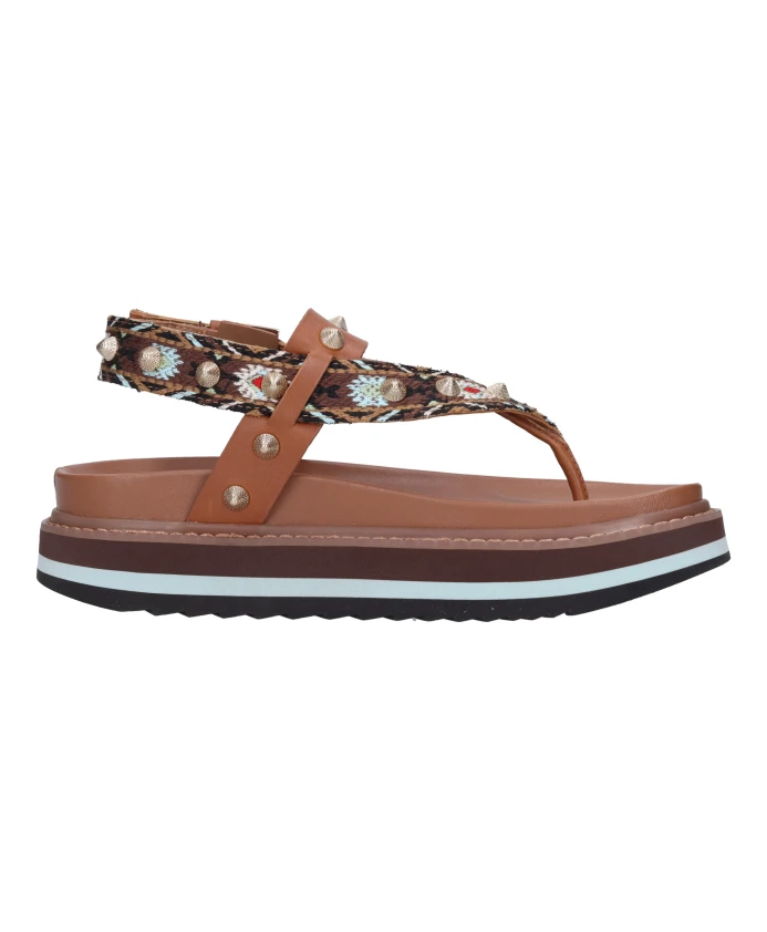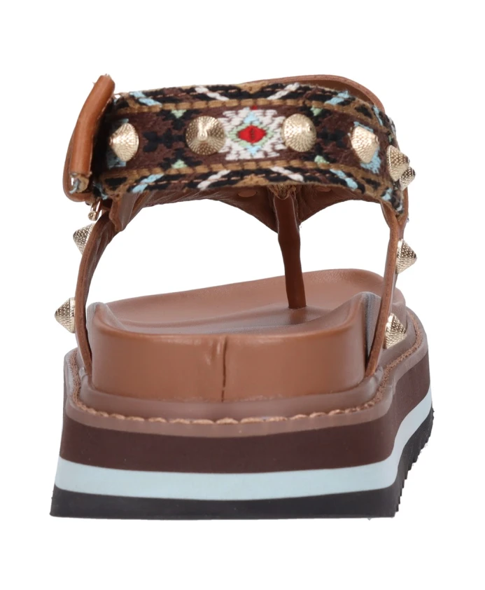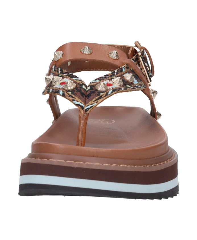 Женские сандалии на плоской подошве ASH из кожи и ткани. Золотые заклепки. Ремешок с пряжкой. Резиновая подошва. Кожаная стелька.