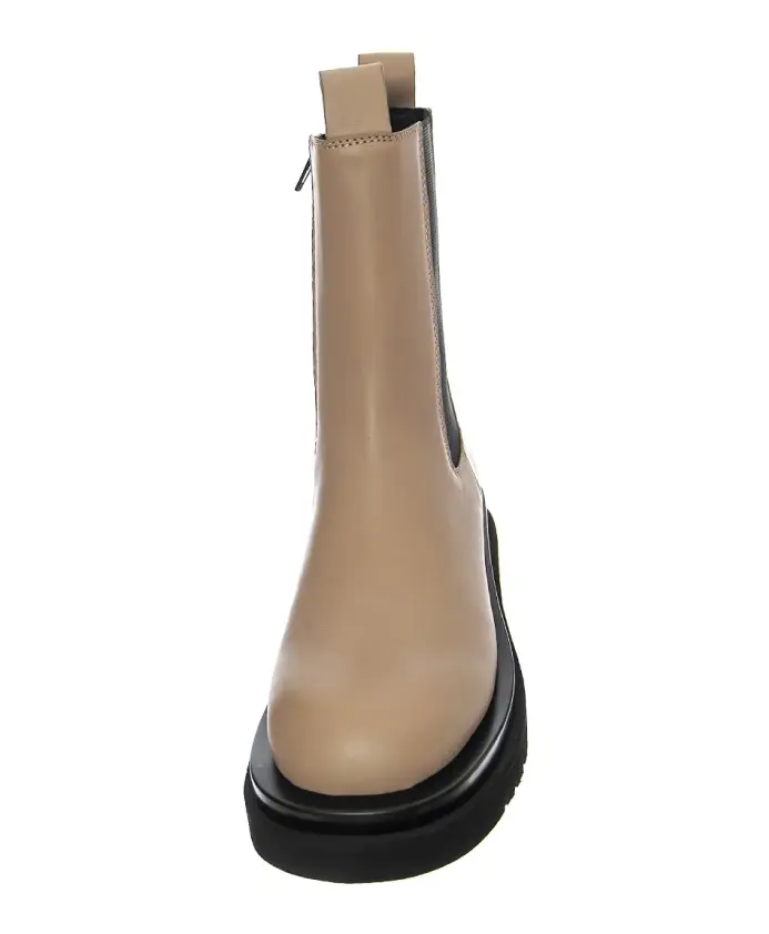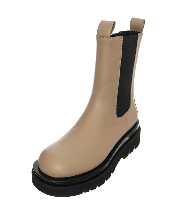 Обновите свой осенне-зимний гардероб с помощью этих женских ботинок челси Jeffrey Campbell. Эти ботинки из бежевой кожи с протектором на щиколотке и эластичными боками оснащены резиновой подошвой для дополнительного комфорта и стиля.