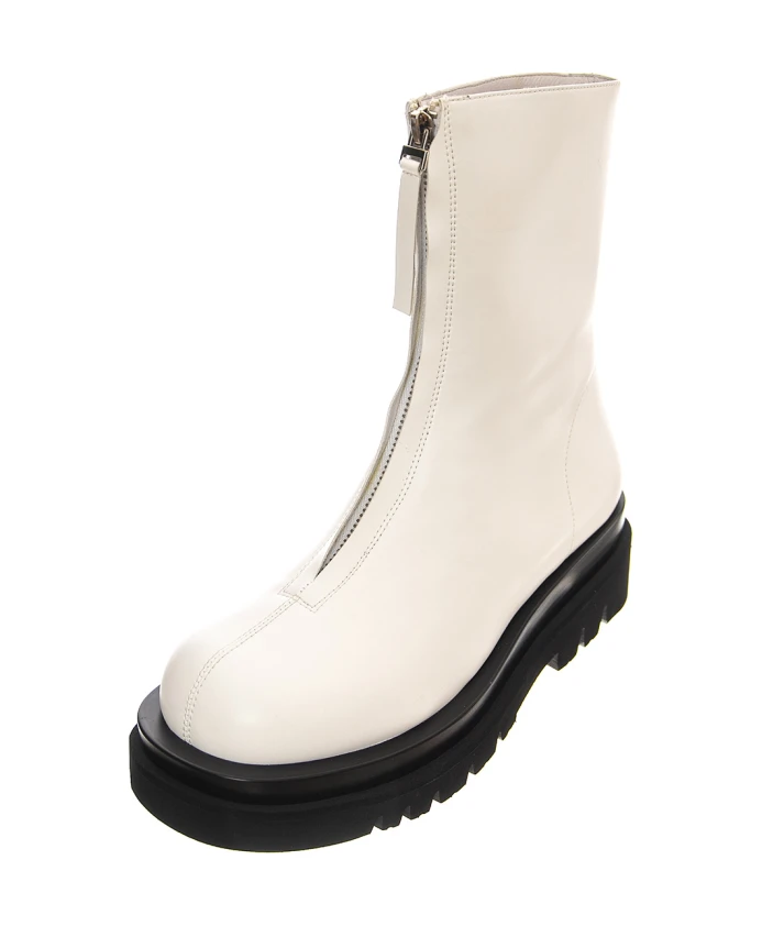 Обновите свою коллекцию обуви этими ботильонами Jeffrey Campbell. Создан для женщин и идеально подходит для весны и лета. Верх из белой кожи и средний профиль придают им элегантный вид, а передняя молния и резиновая подошва практичны.