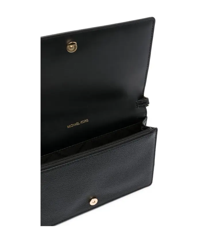 Подчеркните свой стиль с помощью этой элегантной сумки через плечо Michael Kors. Эта сумка из черной телячьей кожи с зернистой текстурой оснащена регулируемым ремнем через плечо, откидным верхом с золотистыми буквами логотипа и карманом сзади. Разделенное отделение содержит внутренний карман на молнии и жаккардовую подкладку с логотипом. Эта сумка, дополненная золотистой фурнитурой и магнитной застежкой, выглядит стильно и практично. Размеры: ГЛУБИНА: 5,0 см, ВЫСОТА: 14,0 см, РЕМЕНЬ: 127,0 см, ШИРИНА: 21,0 см.