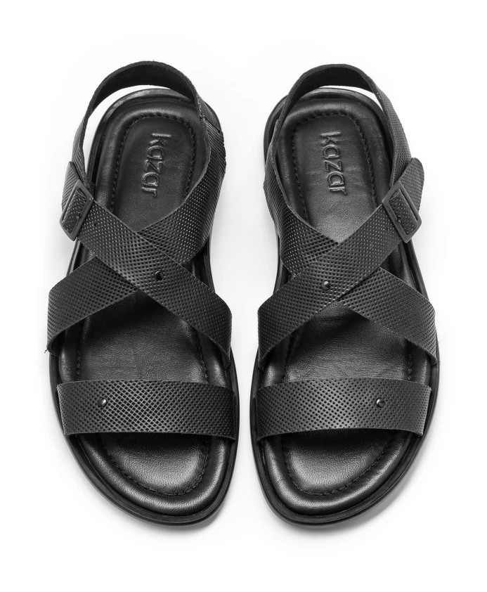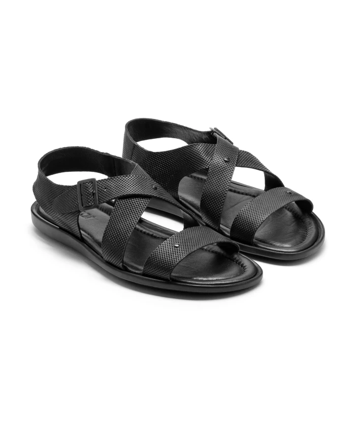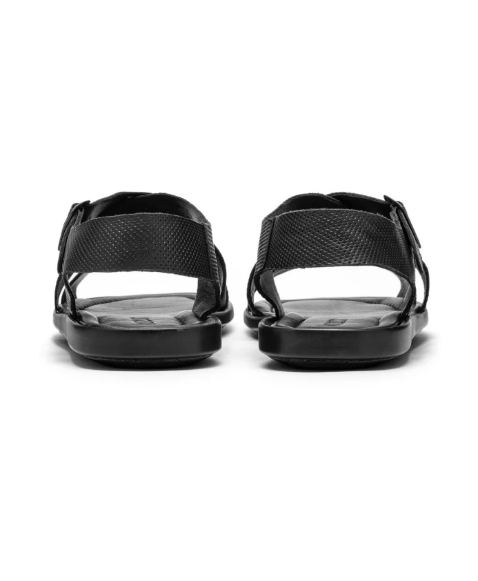 Мужские сандалии черного цвета из высококачественной лицевой кожи идеально подходят для теплых летних дней. С перфорированными кожаными ремешками для оригинального образа. Стелька изготовлена из ультрамягкой овчины для превосходного комфорта. Закрывается регулируемым ремешком.