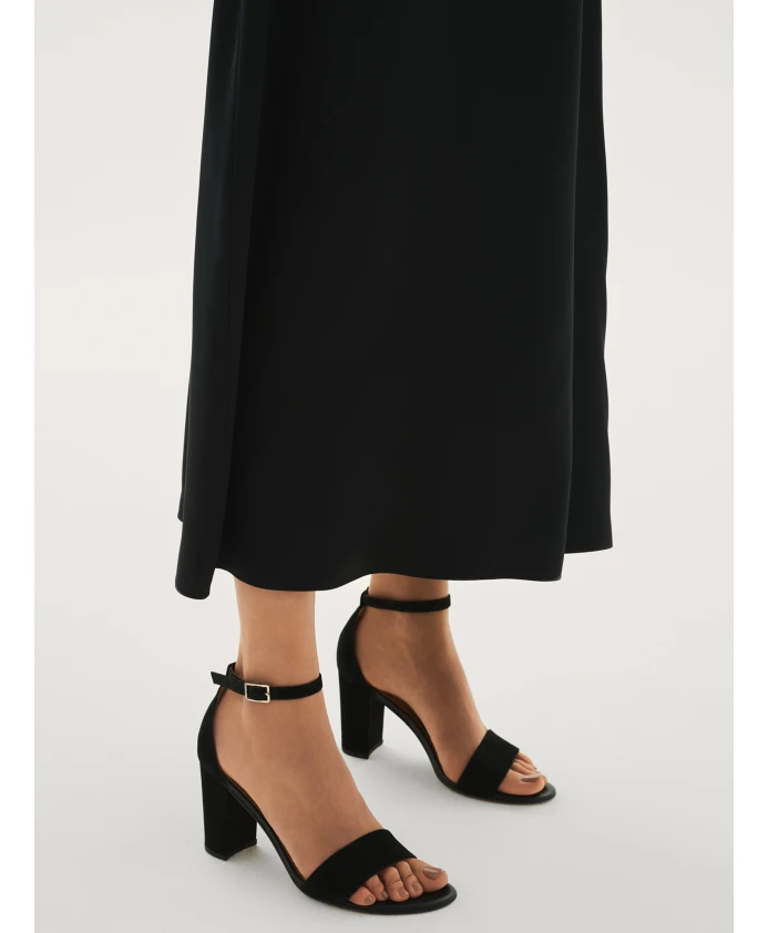 Женские черные босоножки из качественного нубука – очень элегантная модель, а глубина черного цвета подчеркнута структурой нубука. Идеальная обувь для элегантных вечерних нарядов. Подошва из овчины обеспечивает максимальный комфорт.