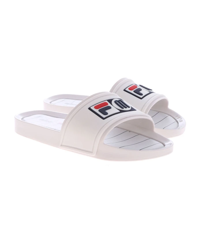 Встречайте лето с этими сандалиями Melissa. Эти ароматные резиновые сандалии белого цвета, созданные в сотрудничестве с Fila, украшены контрастными деталями логотипа. Эти ползунки, изготовленные из 100% перерабатываемого ПВХ, не только стильны, но и экологически безопасны.