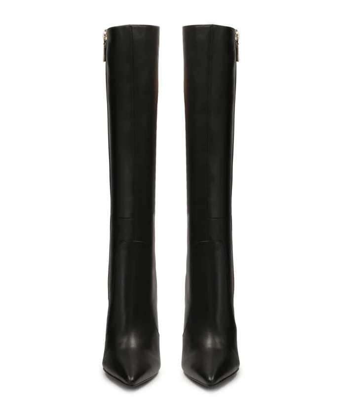 Минималистичные сапоги из черной натуральной кожи – элегантная и неподвластная времени обувь. Они характеризуются чистыми линиями и классическим дизайном, которые идеально вписываются в модные тенденции минимализма. Высокий каблук формы придает силуэту стройность и элегантность, обеспечивая при этом устойчивость и комфорт. Этот каблук достаточно высок, чтобы добавить несколько дюймов высоты, но остается удобным благодаря своему пропорциональному дизайну. Заостренный нос визуально удлиняет ноги и придает образу утонченный, шикарный вид. В частности, ботинки — идеальный выбор для женщин, которые ценят классическую элегантность и высокое качество изготовления. Они идеально сочетаются с элегантными платьями и более повседневными стилями, добавляя изысканности. Мягкая подкладка из овчины гарантирует высокий комфорт при ношении, а тканевая меховая подкладка обеспечивает ощущение тепла в холодные дни.