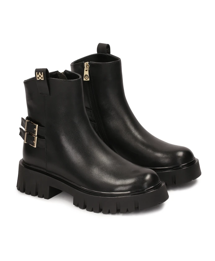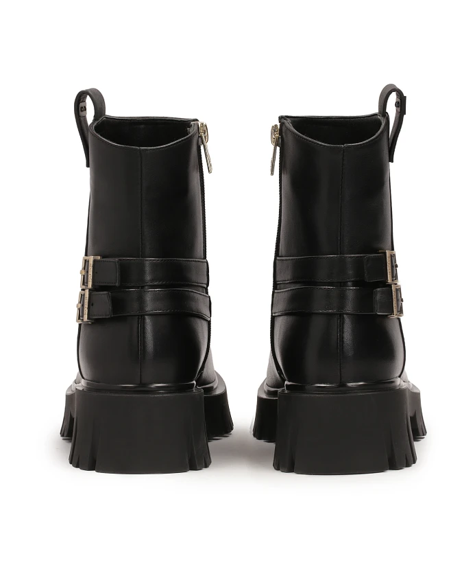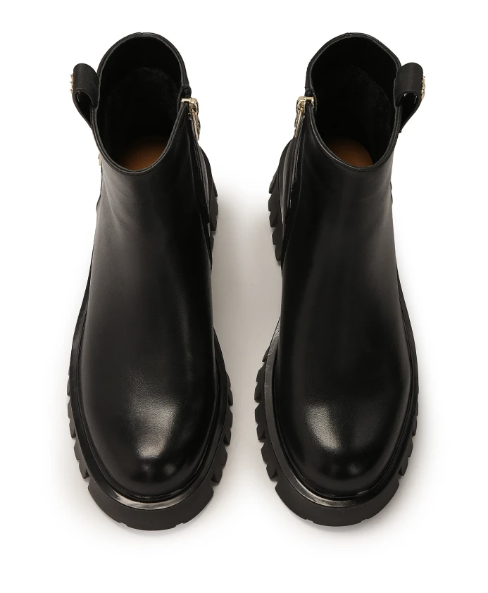 Черные ботинки – это квинтэссенция стиля и функциональности, идеальные для тех, кто ценит и качество, и уникальный дизайн. Изготовленные из натуральной кожи, они гарантируют долговечность и комфорт. Эта модель имеет толстую прочную подошву, которая обеспечивает отличную изоляцию и устойчивость на различных поверхностях. Прямой голенище высотой до щиколотки придает туфлям элегантный вид и идеально подходит для самых разных нарядов, от повседневного до формального. Декоративные элементы включают ремешки с пряжками и скромную металлическую монограмму. Эти ботинки — отличный выбор для тех, кто ищет обувь с вневременным дизайном, которая прослужит много сезонов. Мягкая подкладка из овчины гарантирует высокий уровень комфорта, а подкладка из тканевого меха создает ощущение тепла в холодные дни.