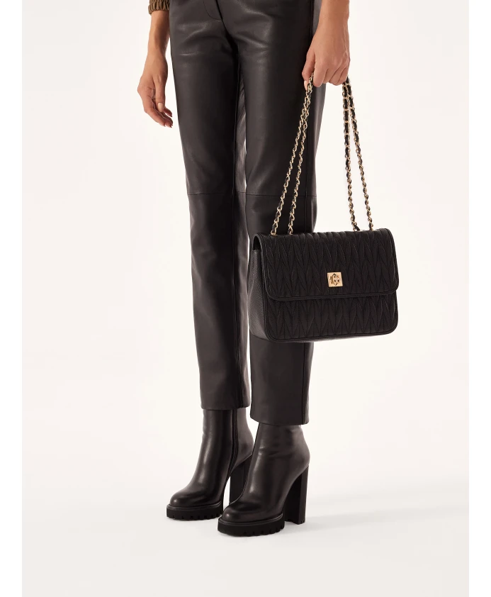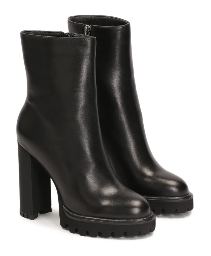 Черные ботинки из гладкой лицевой кожи имеют чрезвычайно практичный и универсальный дизайн. Минималистичный высокий голенище идеально сочетается с толстой подошвой на платформе и высоким каблуком. Безупречное качество изготовления и внимание к каждой детали оценит каждая женщина, ценящая обувь высочайшего качества. Универсальная цветовая гамма делает эту модель удачно подходящей для многих стилей. Мягкая подкладка из овчины гарантирует высокий комфорт при ношении, а подкладка из тканевого меха обеспечивает ощущение тепла в холодные дни.