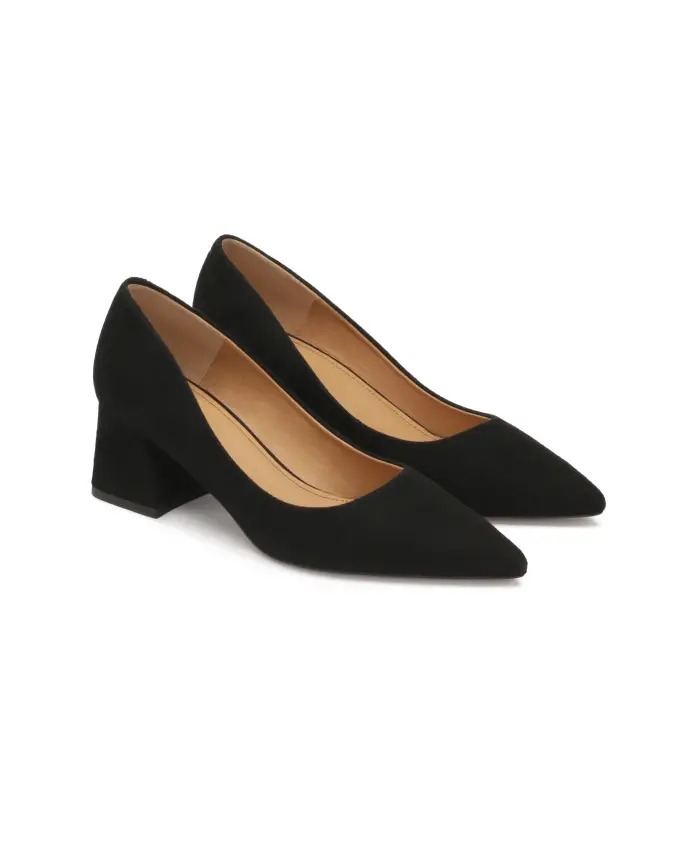 Элегантные черные замшевые туфли на широком каблуке, отделанные острым носком, – настоящий шедевр моды и утонченного стиля. Их простой, но уникальный дизайн привлекает внимание и обеспечивает непревзойденный комфорт в течение всего дня. Верх из мягкой замши не только прочный, но и приятный на ощупь, что делает эту обувь чрезвычайно удобной. Широкий каблук обеспечивает устойчивость и позволяет уверенно ходить, не беспокоясь о боли в ногах. Эти минималистичные черные туфли универсальны и идеально подходят для разных ситуаций. Мягкая полуанилиновая подкладка из козьей кожи гарантирует исключительный комфорт. Тонкая кожаная подошва отличается прочностью и эстетичным внешним видом.