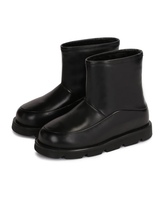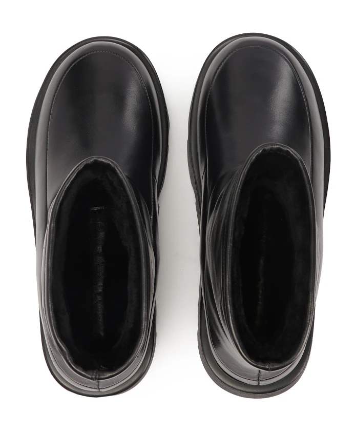 Черные женские зимние ботинки с верхом из натуральной кожи без застежки — идеальная обувь для зимних дней. Верх из натуральной кожи не только стильный, но и прочный и устойчивый к атмосферным воздействиям. Снегоступы утеплены и обеспечивают тепло и комфорт даже в самые холодные дни. Обувь разработана на более толстой подошве с протектором, гарантирующим отличное сцепление со скользкими поверхностями. Это делает зимние ботинки не только модными, но и практичными, а также обеспечивает безопасность при ходьбе по снегу и льду. Если вы хотите быть стильными и готовыми к зимним приключениям, эти ботинки – абсолютный хит, который покорит любой зимний стиль! Подкладка из тонкой и мягкой полуанилиновой овчины для максимального комфорта.