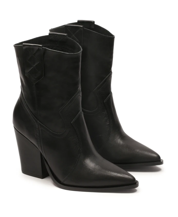 Женские ботинки в нестареющем ковбойском стиле изготовлены из качественной натуральной кожи с гладкой поверхностью. Классическая форма дополнена впечатляющей строчкой и фирменным каблуком из овчины. Сапоги созданы для женщин, которые превыше всего ценят комфорт и модный внешний вид. Эта модель прекрасно дополнит различные стили и позволит выделиться из толпы. Мягкая подкладка из козьей кожи гарантирует высокий комфорт при ношении, а подкладка из тканевого меха обеспечивает ощущение тепла в холодные дни.