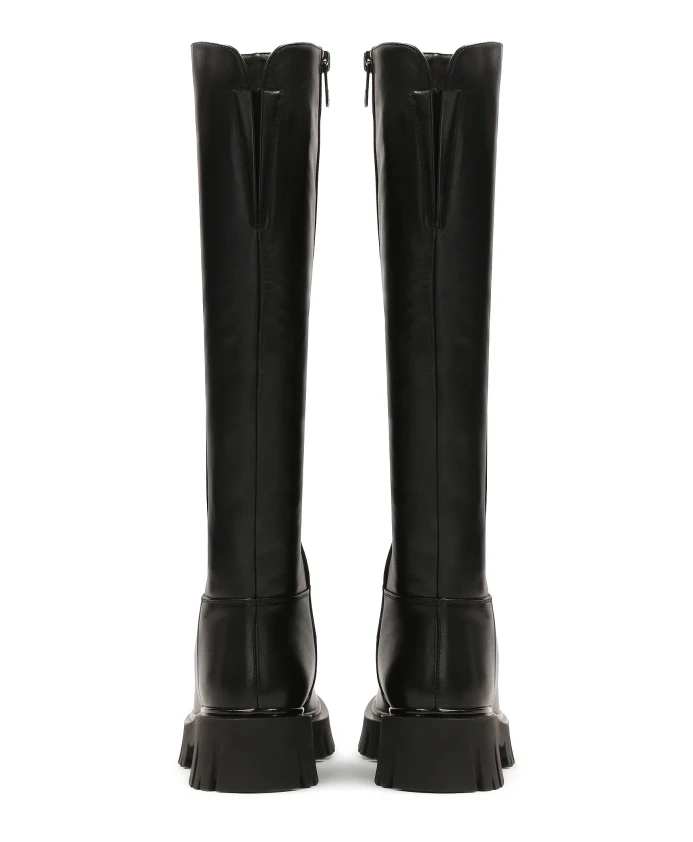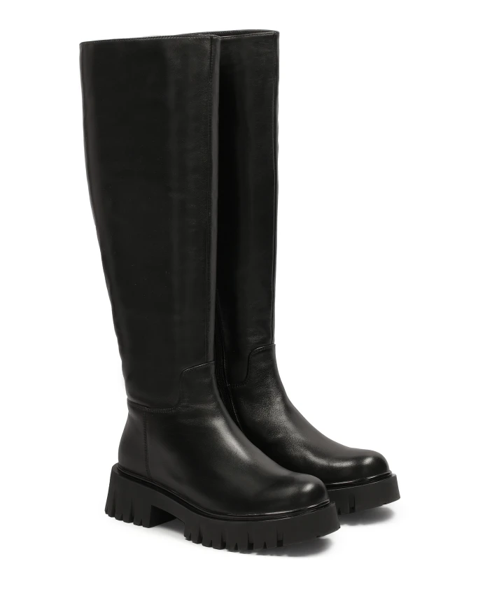 Сапоги с высокой молнией сверху – идеальный выбор для холодных дней. Высококачественная лицевая кожа не только улучшает эстетическую ценность обуви, но, прежде всего, продлевает срок ее службы. Модным элементом представленной модели является толстая подошва, которая отлично изолирует ногу от холода земли. Кроме того, он обеспечивает отличное сцепление, что так важно зимой. Подкладка из мягкой полуанилиновой овчины гарантирует высокий комфорт, а тканевая меховая подкладка обеспечивает ощущение тепла в холодные дни.