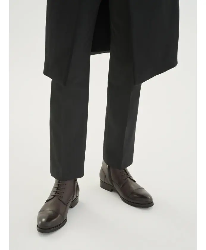 Ботинки мужские из качественной лицевой кожи – элегантная модель в повседневном стиле. Простой дизайн, украшенный съемной крышкой обуви и тонкими швами, отличается исключительным вкусом. Классические, неподвластные времени ботинки — незаменимое дополнение к осенним и зимним нарядам. Коричневый цвет станет интересной вариацией нарядов классического черного цвета. Молния на внутренней стороне голенища облегчает надевание и снятие обуви. Внутренняя подкладка из текстильной ткани обеспечивает комфорт и тепло.
