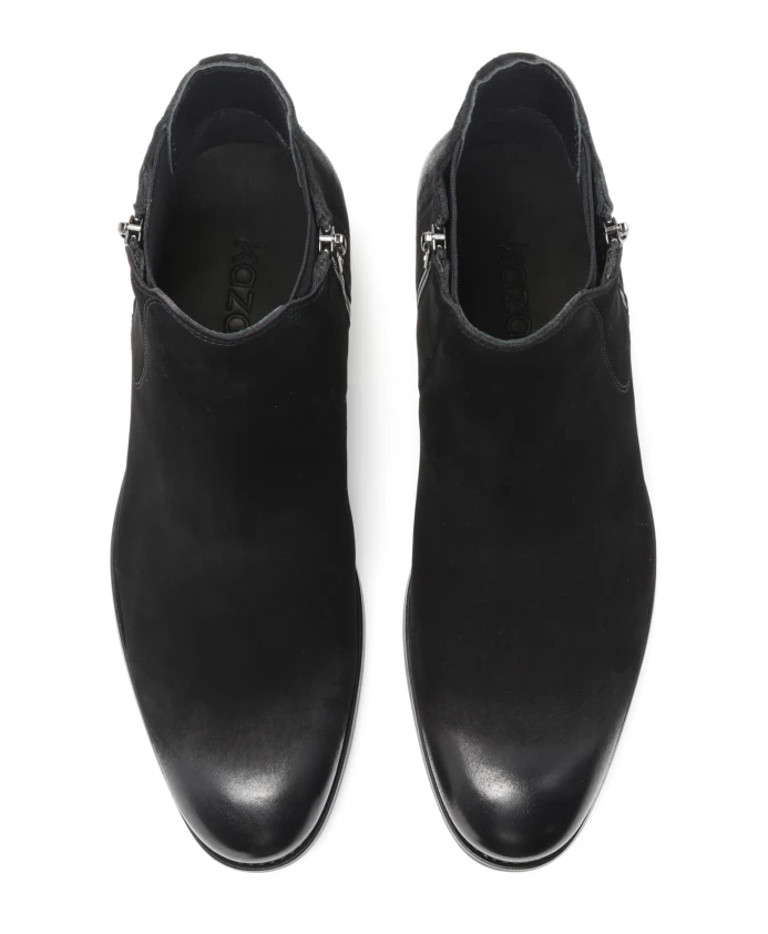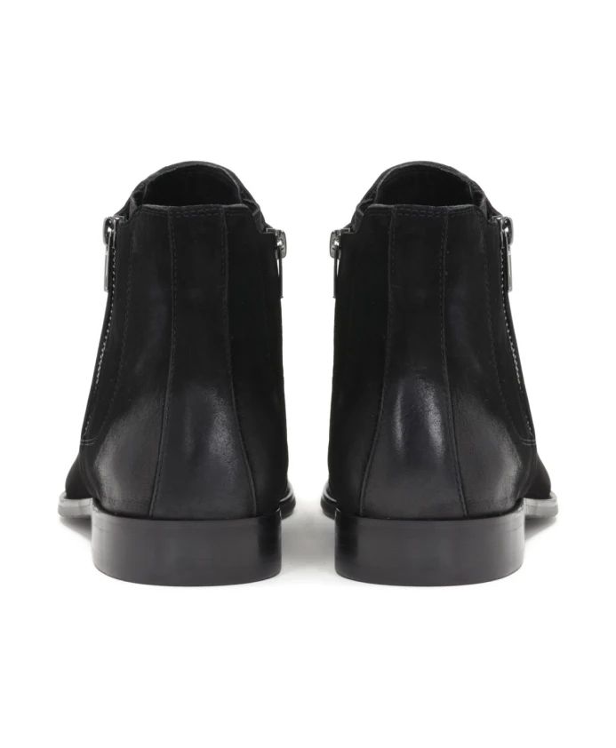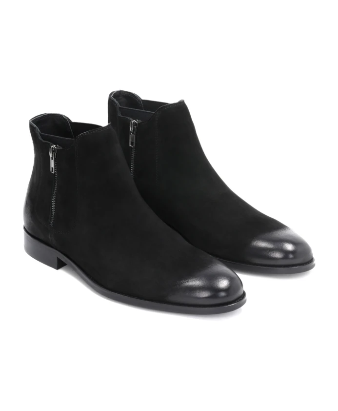 Мужские полусапоги минималистичного кроя – это вневременной дизайн, идеальный для мужчин, ценящих простой классический стиль. Верх из нубука идеально сочетается с городскими и повседневными нарядами благодаря универсальной расцветке. Две молнии по бокам голенища не только привлекают внимание, но и облегчают надевание обуви. Немного потертые носочки и каблуки придают этой модели оригинальный характер. Подкладка из овчины гарантирует исключительный комфорт и гигиенические условия внутри обуви.