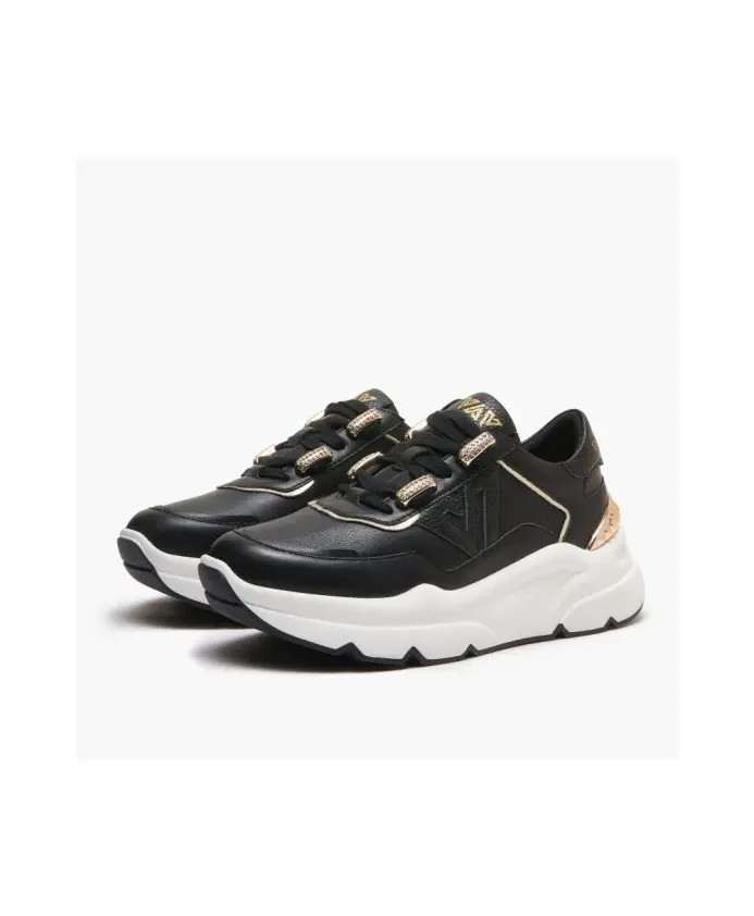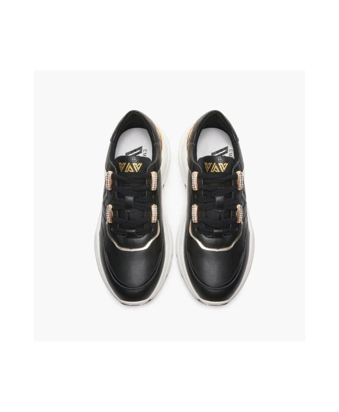 Женские кроссовки Emanuelle Vee Zoe из кожи с контрастными деталями и шнуровкой со стразами. Мягкая съемная кожаная подошва, двухцветная подошва толщиной 5,5 см.