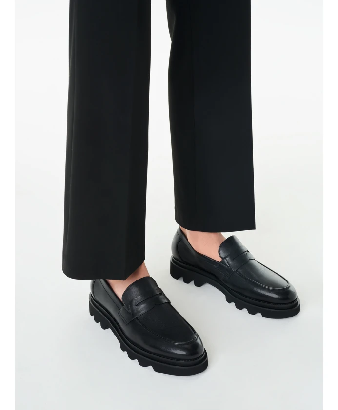 Вечная модель мужской обуви в новой версии на авангардной рифленой подошве с протектором. Они изготовлены из натуральной лицевой кожи классического черного цвета. Для этих туфель характерно то, что верх украшен перфорированным ремешком и украшен двойными седельными швами на носу. Эта эффектная и удобная обувь идеально подойдет для офисной работы, элегантных официальных мероприятий или повседневных городских образов.