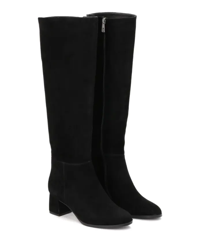 Черные женские ботильоны из высококачественной замши представляют собой классический дизайн в универсальных цветах, которые подойдут к любому наряду. Высокая голенища красиво смотрится на ногах и делает их стройнее. Широкий каблук средней высоты гарантирует комфорт и устойчивость. Минималистичные высокие сапоги – базовый, универсальный элемент самых разных нарядов. Подкладка из мягкой овчины гарантирует высокий уровень комфорта, а тканевая подкладка обеспечивает тепло в холодные дни.