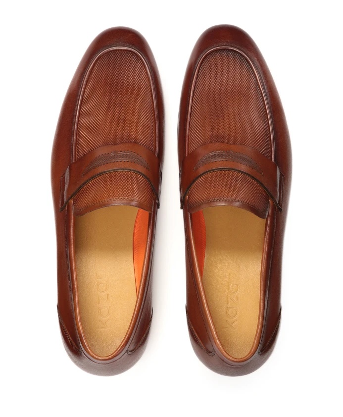 Подчеркните свой стиль с помощью этих мужских лоферов Kazar. Эти элегантные коричневые лоферы, изготовленные из 100% натуральной кожи, имеют уникальный дизайн с изящным тиснением. Они не только излучают изысканность, но и обеспечивают исключительный комфорт благодаря мягкой подкладке из овчины. Почувствуйте стиль и комфорт с этими высококачественными лоферами.