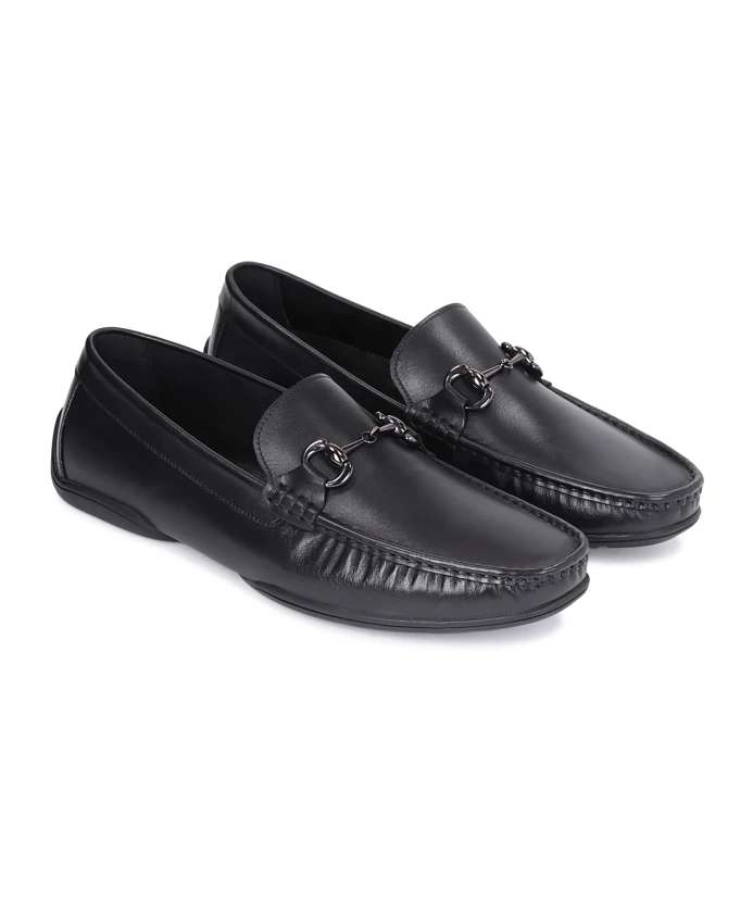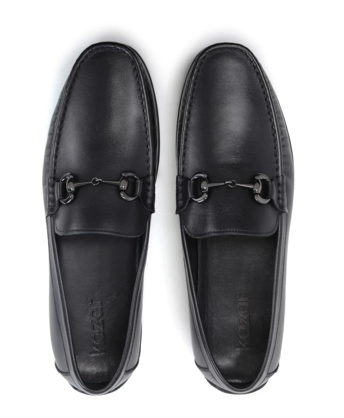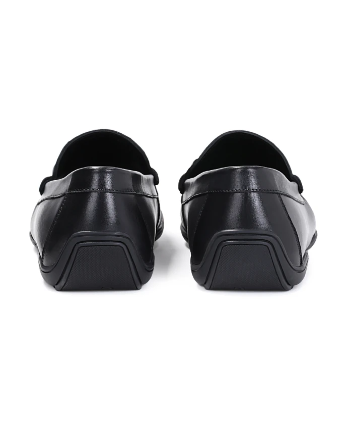 Классические мужские мокасины из высококачественной лицевой кожи очень удобные и легкие. Простой верх, украшенный металлической пряжкой и U-образной резьбой, прекрасно сочетается с формованной гибкой подошвой, которая дополнительно защищает заднюю часть обуви. Слипоны красиво смотрятся на голой ноге, но их можно носить и с глубокими носками. Подкладка изготовлена из мягкой овчины, что обеспечивает гигиеничные и комфортные условия для ног.