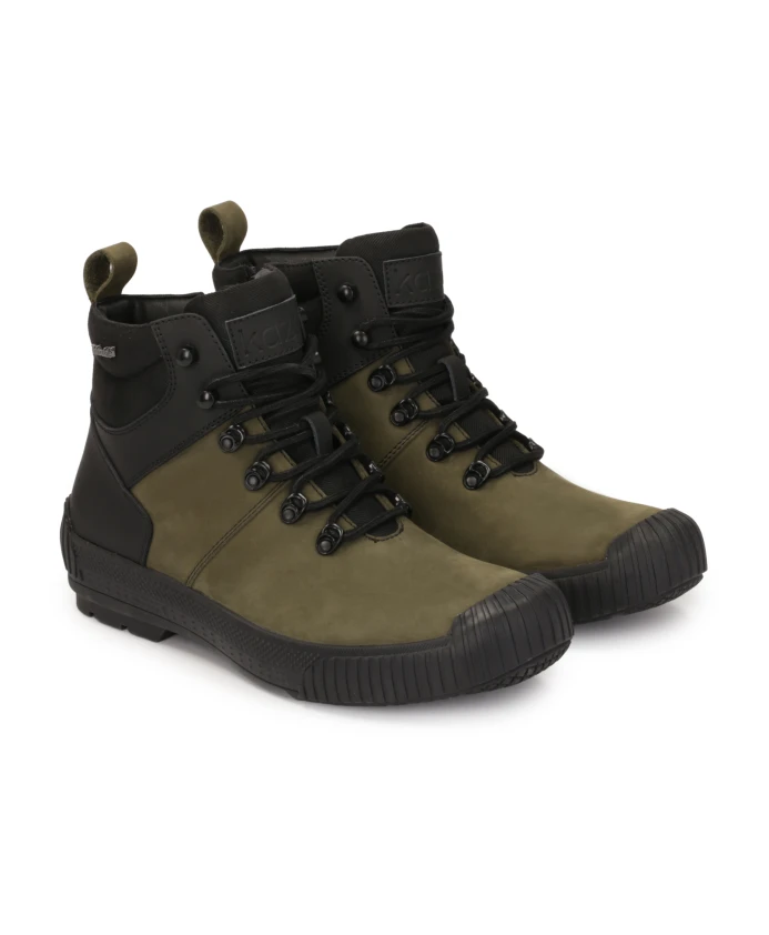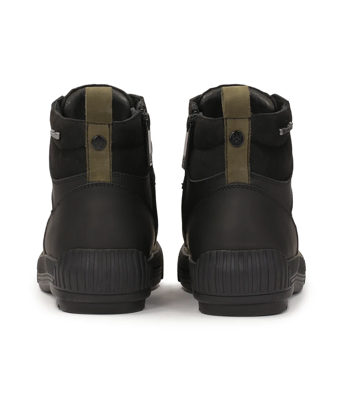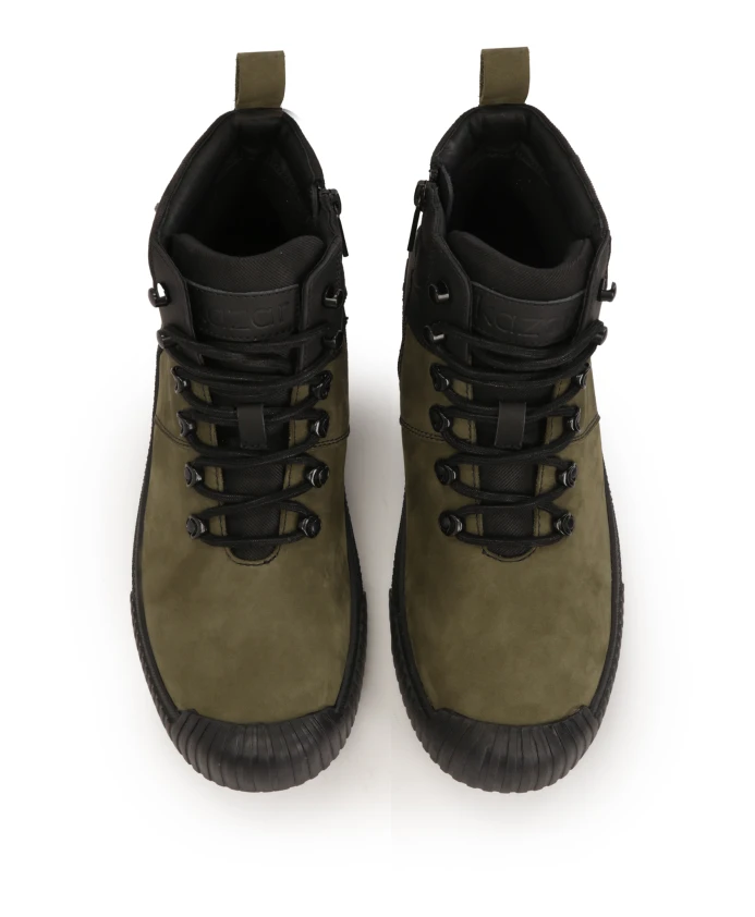 Мужские ботильоны черного цвета и цвета хаки — идеальное сочетание стиля и функциональности, идеальное для требовательных пользователей. Изготовленные из высококачественной водонепроницаемой кожи и ткани нубук, они отличаются долговечностью. Кожа нубук мягкая и элегантная, а ткань, используемая в важных местах, повышает долговечность обуви. Ботинки оснащены как молниями, так и шнурками. Толстая подошва обеспечивает отличное сцепление с различными поверхностями и дополнительную защиту пальцев и пяток. В ботинках использована технология Thinsulate, которая обеспечивает отличную теплоизоляцию, эффективно сохраняет тепло и защищает ноги от холода, оставаясь при этом легкими и удобными в носке. Внутри обувь утеплена мембраной Thinsulate, которая обеспечивает чрезвычайно эффективное удержание тепла за счет большого количества воздушных подушек.