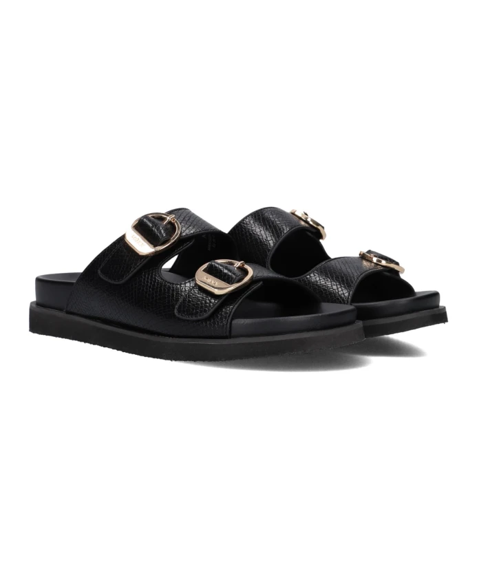 Будьте стильны с ползунками NIRKEN от MEXX. Эти черные шлепанцы с пряжками изготовлены из материала, имитирующего кожу, с узором под рептилию. Подкладка также имеет вид кожи. Резиновая подошва обеспечивает комфорт и модный вид. Идеально подходит для дня на пляже или летней прогулки по городу. Сочетайте ползунки с воздушным летним платьем или модными шортами – и вы готовы сиять.