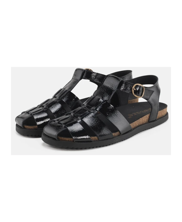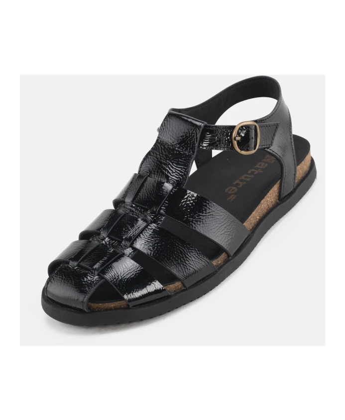 Nature Footwear представляет сандалии Malene черного цвета — стильный и удобный выбор для женщин. Изготовлен из кожи и лакированной кожи, с регулируемой застежкой-пряжкой. Сделано в Португалии, Европе.
