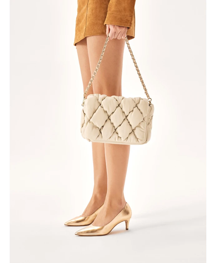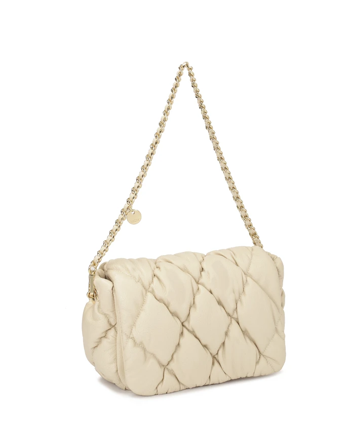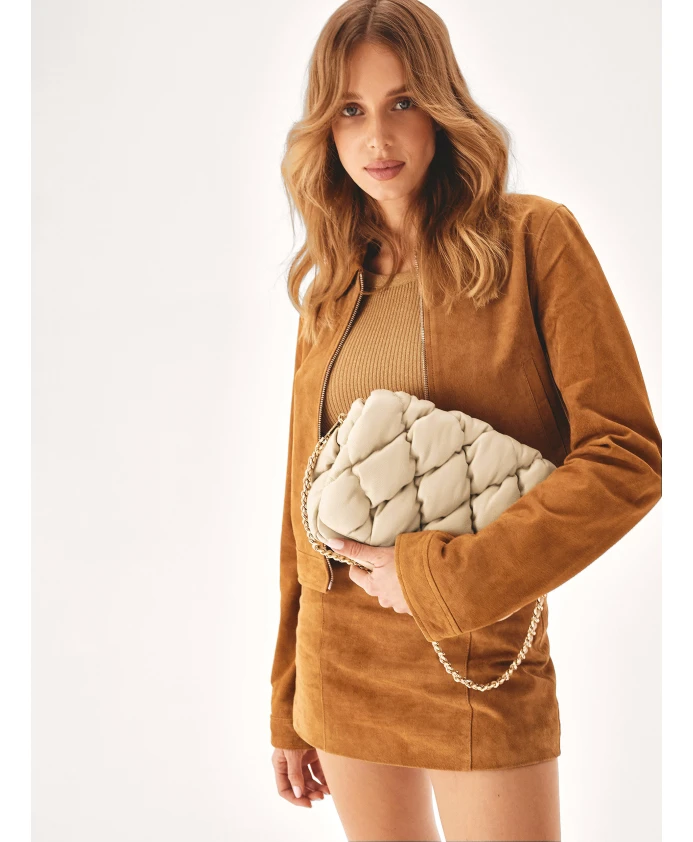 Кожаная сумочка выглядит чрезвычайно стильно и элегантно. Их поверхность стеганая, что добавляет утонченности и класса. Металлическая цепочка, переплетенная с кожаным ремешком, выполняет не только практическую функцию, но и эстетическую. Мягкая сумочка в универсальном цвете – это сочетание классики и современности, которое понравится многим женщинам. Подробности о товаре: Сумочка имеет основное отделение, закрывающееся клапаном на магнитной застежке. Внутри 1 карман на молнии и 1 открытый карман. Сумочка оснащена цепочкой.