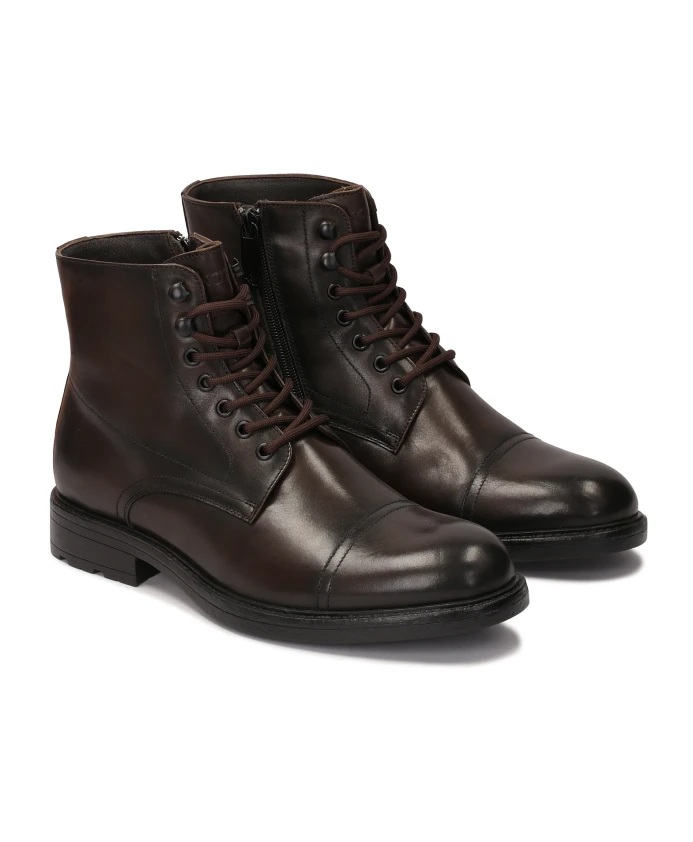 Эти коричневые классические кроссовки — квинтэссенция элегантности и простоты. Изготовленные из высококачественной натуральной кожи, они имеют гладкий простой верх, который придает им универсальный и вневременной вид. Обувь оснащена застежкой-молнией и шнурками для удобной и регулируемой посадки. Повседневный стиль этих кроссовок делает их идеальным выбором для повседневной носки и идеально сочетается с различными стилями, от джинсов до брюк чинос. Представленные ботинки – это идеальное сочетание функциональности и стиля, идеально подходящие для различных случаев. Подкладка обуви на текстильной подкладке создает ощущение комфорта и тепла.