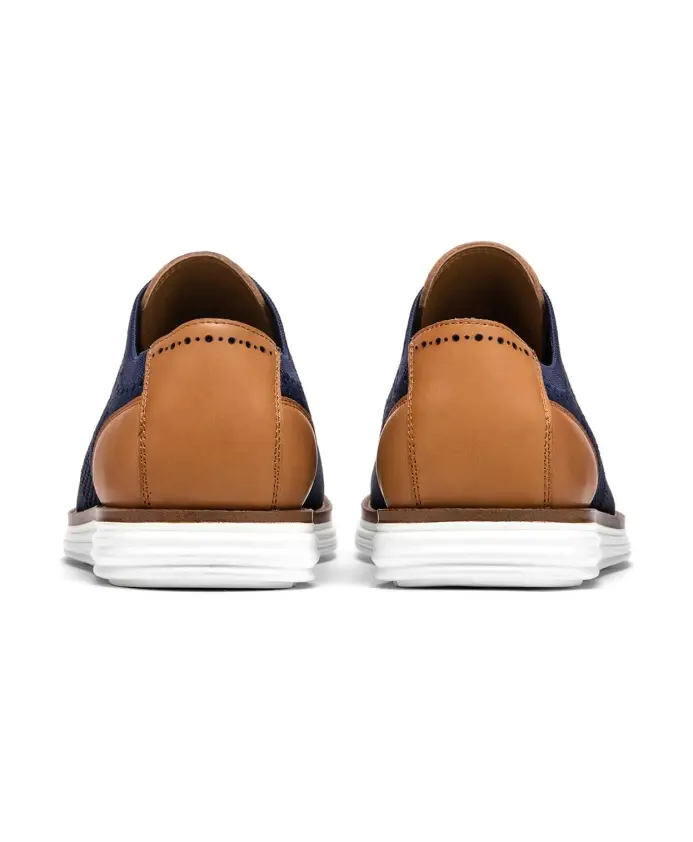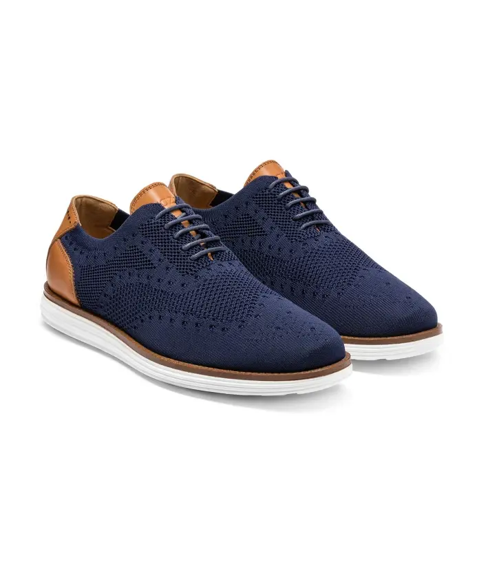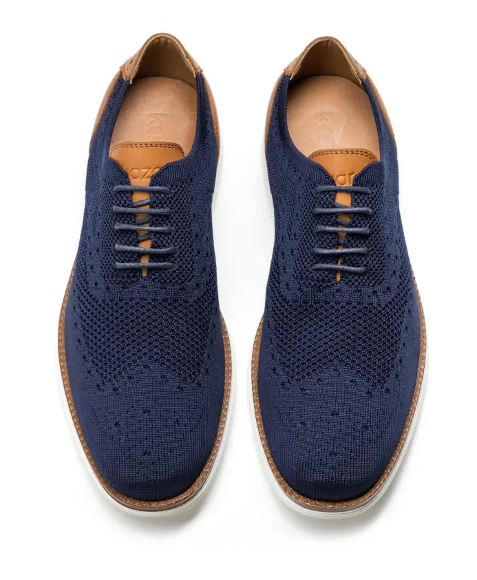 Мужские темно-синие туфли из высококачественной лицевой кожи и ткани – исключительно модное предложение для повседневного стиля. Простой, изящный крой верха с привлекательным рисунком и текстурой оптимально адаптируется к форме стопы. Коричневая кожа сочетается с черной тканью, которая красиво контрастирует с белым цветом подошвы. Комфорт ногам обеспечивает идеально прилегающая кожаная подкладка.