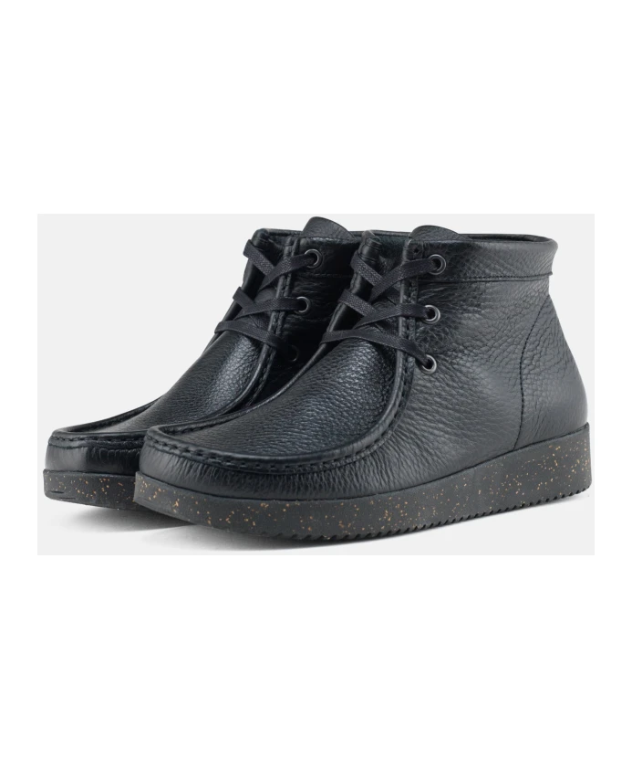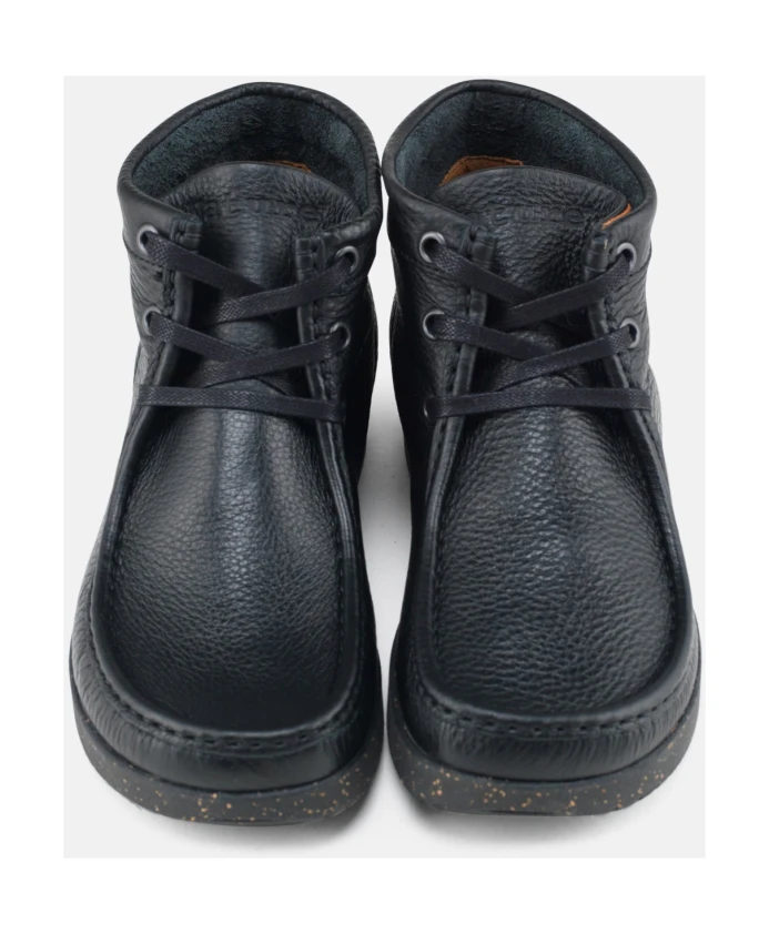 Nature Footwear представляет женские кожаные ботинки на шнуровке Emma черного цвета. Эти ботинки, изготовленные в Португалии (Европа), имеют верх из фрезерованной кожи, подкладку и стельку OnSteam, а также эргономичную подошву из натурального каучука с пробковой отделкой. Хлопковые шнурки придают этим стильным и удобным ботинкам классический вид.