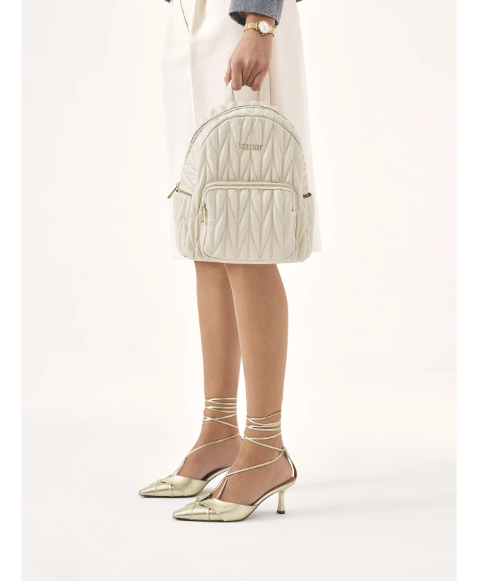 Рюкзак из высококачественной натуральной кожи – интересное предложение для женщин, которые не хотят упускать из виду комфорт и стильный внешний вид в повседневной жизни. Минималистичная форма шикарна, а швы привлекают внимание. Компактная модель с ручкой для удержания в руке представляет собой интересную альтернативу классической городской сумке. Подробности о товаре: Рюкзак имеет 1 основное отделение, закрывающееся на молнию, и небольшой карман на молнии спереди. Внутри большого отделения есть 1 карман на молнии и 1 открытый карман. Открытые карманы расположены по бокам рюкзака.