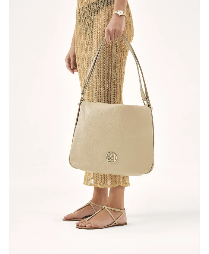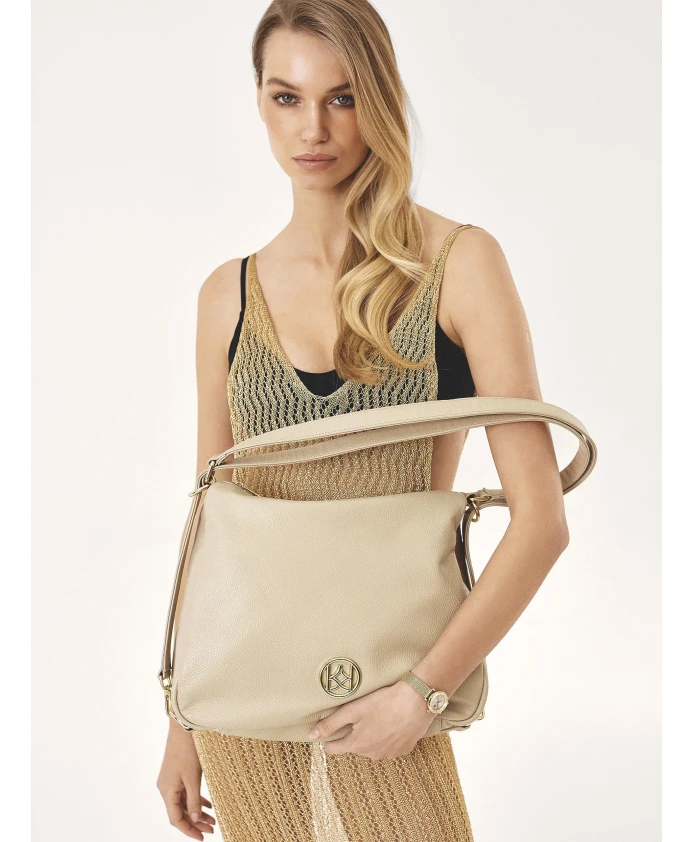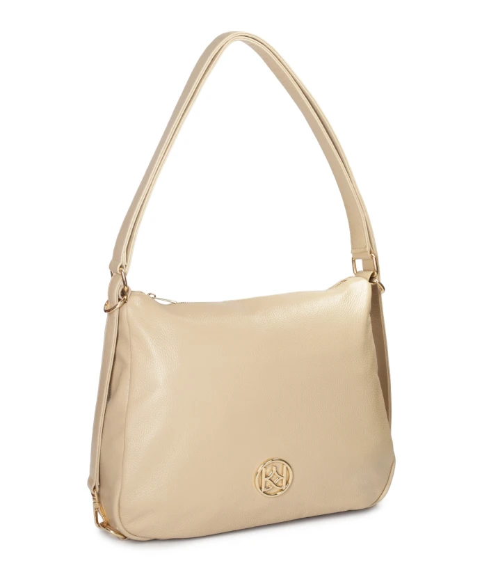 Минималистичная сумка через плечо из высококачественной бежевой кожи с зернью – элегантный и вневременной аксессуар, идеально отвечающий потребностям современной женщины, ценящей стиль и функциональность. Просторный салон вмещает все ваши ежедневные потребности. Бежевая сумочка прекрасно сочетается как с повседневным, так и с более формальным нарядом. Благодаря своей универсальности и высокому качеству изготовления она станет неотъемлемой частью повседневной жизни. Подробности о товаре: Сумочка имеет 1 основное отделение, которое закрывается на молнию. Внутри 1 карман на молнии и 2 открытых кармана. На задней стороне сумки расположен карман на молнии. Ручки регулируются.