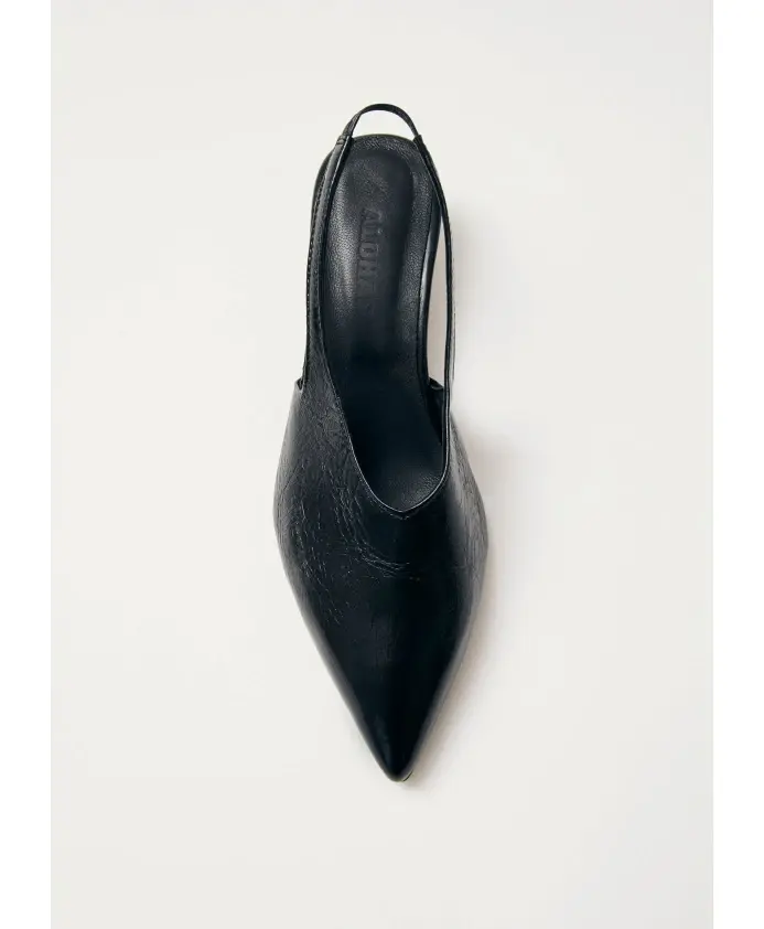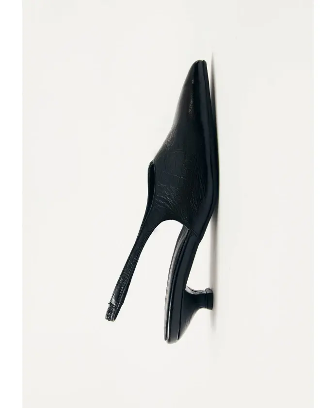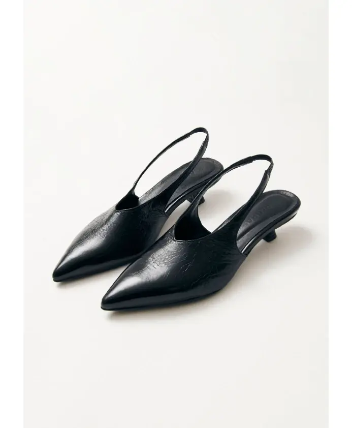 Черные кожаные туфли с пяткой на пятке из жатой кожи. Туфли Eros, выполненные из черной мятой кожи, имеют невысокий каблук высотой 4 см и оснащены эластичным ремешком на пятке, обеспечивающим непревзойденный комфорт. Острый заостренный носок и минималистичная длинная союзка добавляют завершающие штрихи элегантному силуэту. Наша обувь нормальная. Если вы находитесь между размерами, мы рекомендуем выбрать меньший размер.