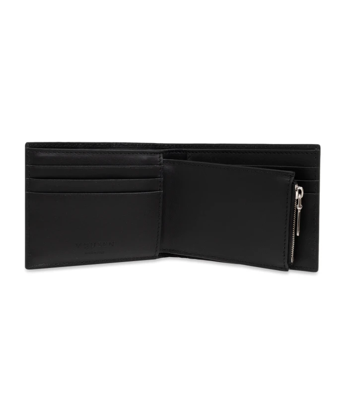 Представляем эксклюзивный кожаный кошелек от ALEXANDER MCQUEEN, воплощение роскоши и элегантности. Этот кошелек, изготовленный из высококачественной телячьей кожи, очаровывает своим минималистичным, но изысканным дизайном. Кошелек классической прямоугольной формы выполнен в классическом черном цвете. Передняя часть кошелька украшена тонким серебром.