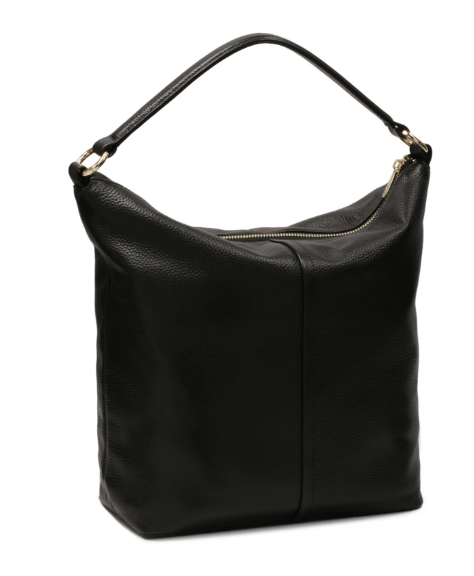 Сумка свободного кроя из черной натуральной кожи излучает простоту и функциональность и идеально вписывается в минималистичный стиль. Яркая форма и чистые линии делают его отличным выбором для тех, кто ценит неподвластную времени элегантность без ненужных украшений. Два съемных ремня позволяют использовать различные варианты ношения и регулировки. Сумку можно носить в руке, перекинуть через плечо или носить по диагонали, в зависимости от ваших предпочтений и случая. Подробности о товаре: Сумочка имеет 1 основное отделение, закрывающееся на молнию. В основном отделении есть 1 открытый карман и 1 карман на молнии. Сумка оснащена коротким и длинным ремешком, оба съемными.