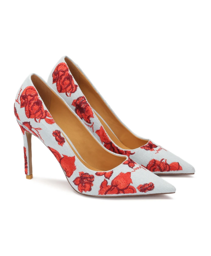 Туфли с цветочным принтом — идеальная модель для женщин, которые ценят элегантность и нотку оригинальности. Выполненные из прочной и модной джинсовой ткани синего цвета, они привлекают внимание и придают каждому наряду неповторимый характер. Что отличает эти туфли от других, так это красивый авторский красный цветочный принт, который добавляет свежести и девичьего очарования. Эти туфли на шпильке прекрасно дополнят множество нарядов: от повседневного до элегантного. Их универсальность и уникальный дизайн наверняка привлекут множество комплиментов. Подкладка из полуанилиновой овчины обеспечивает исключительный комфорт благодаря отличным свойствам поглощения влаги. Подошва из тунисской кожи гарантирует долговечность, прочность и эстетичный внешний вид обуви.