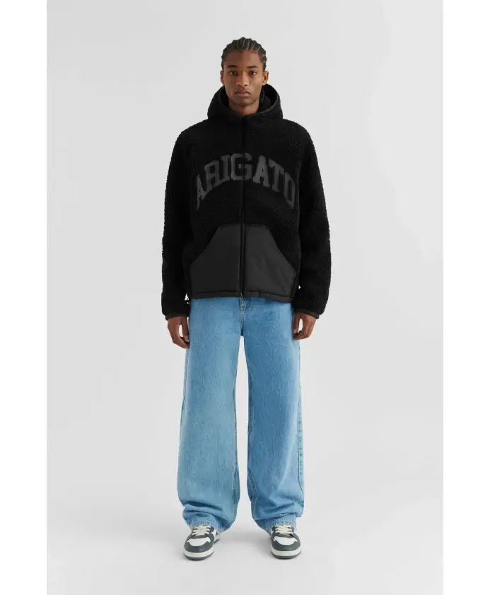 Куртка Chief с капюшоном изготовлена из мягкого флиса с нейлоновой подкладкой на накладных карманах и локтях. Аригато вышито в тон на груди. Эта куртка имеет стандартный крой. Рост модели 187 см, размер М.