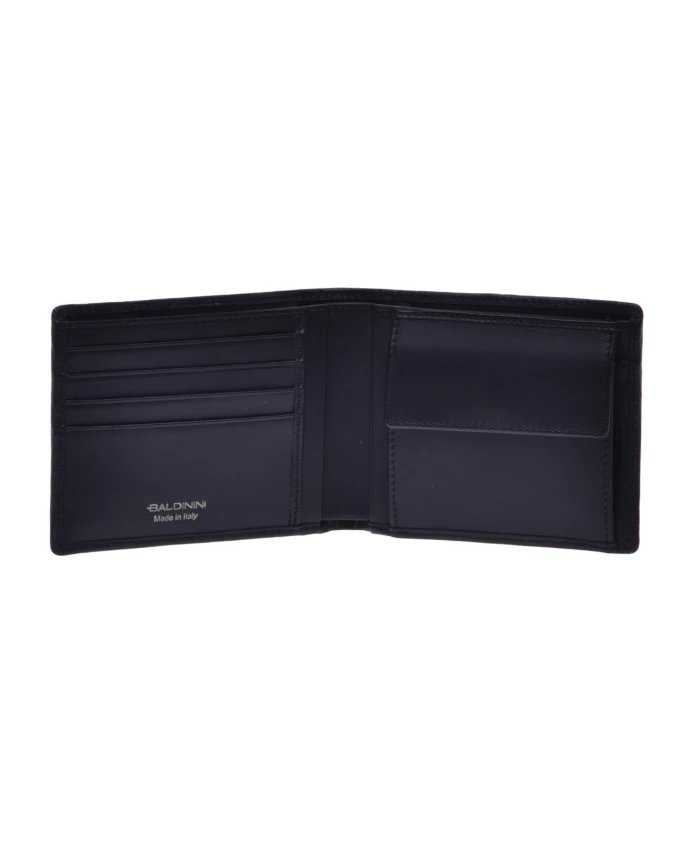 Вместо типичного визитницы эта черная модель имеет передний клапан, украшенный нашим фирменным логотипом. Он изготовлен из мятой телячьей кожи и имеет четыре отделения для карт: одно для банкнот и одно для монет. Это сделано в Италии.