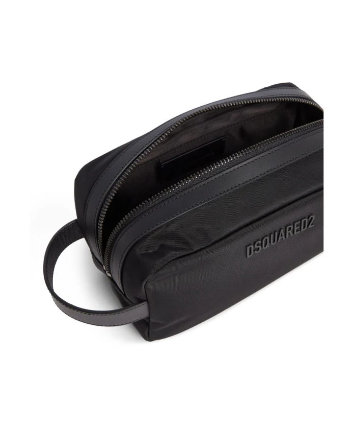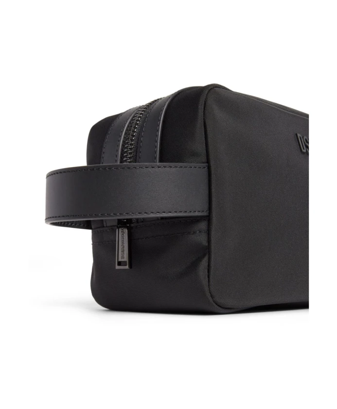Сохраняйте порядок и стильность с этой элегантной черной сумкой для туалетных принадлежностей Dsquared2 с нашивкой-логотипом спереди. Верхняя застежка-молния, задний карман на молнии и ремешок на запястье делают эту сумку практичным выбором для мужчин. Размеры: глубина 10,0 см, высота 12,0 см, ширина 22,0 см.