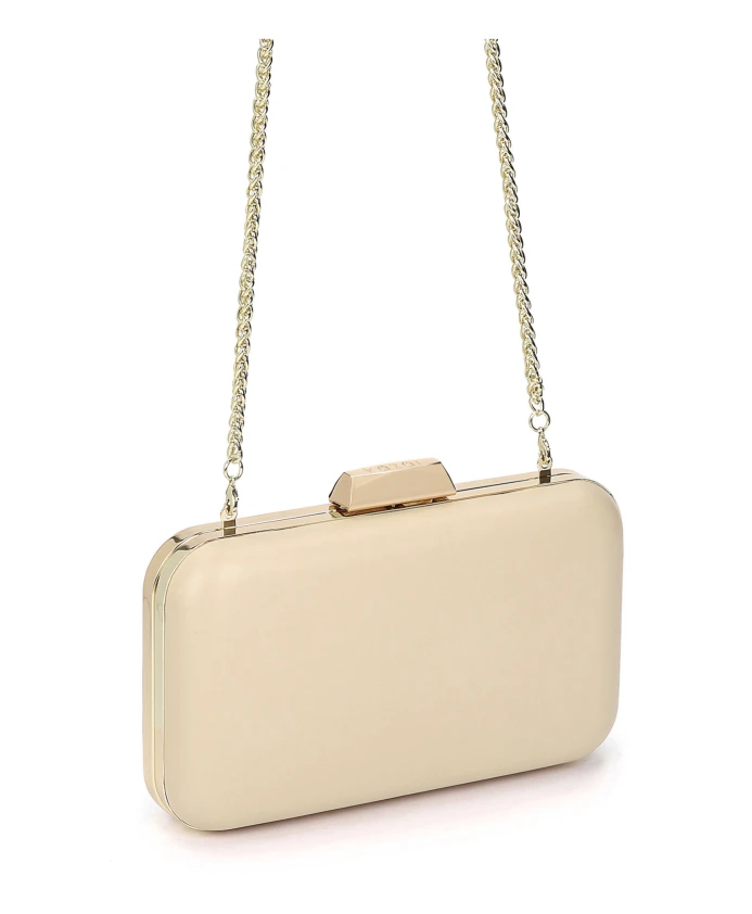 Женский клатч из высококачественной лицевой кожи имеет исключительно красивый стиль. Нежная цветовая гамма подчеркнута золотой фурнитурой, подчеркивающей исключительную привлекательность этой сумки. Жесткая форма отлично сохраняет форму. Потрясающий аксессуар, который подчеркнет вечерний наряд. Логотип KAZAR на застежке подчеркивает роскошную привлекательность этой модели. Защелкивающееся закрытие. Комплектация клатча: Золотая цепочка на плечо. 1 отсек.