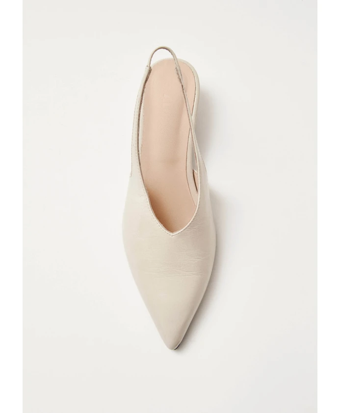 Туфли Eros из мятой кожи кремового цвета с пяткой на пятке. Туфли Eros, выполненные из кремовой мятой кожи, имеют невысокий каблук высотой 4 см и оснащены эластичным ремешком с пяткой на пятке, обеспечивающим непревзойденный комфорт. Острый кончик и минималистичная длинная союзка добавляют завершающий штрих элегантному силуэту. Наша обувь нормальная. Если вы находитесь между размерами, мы рекомендуем выбрать меньший размер.