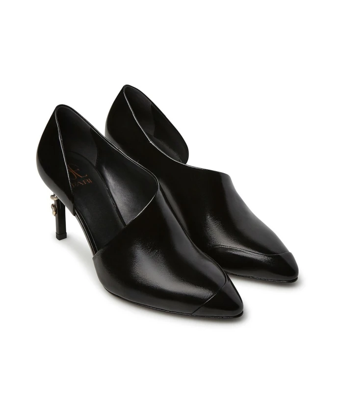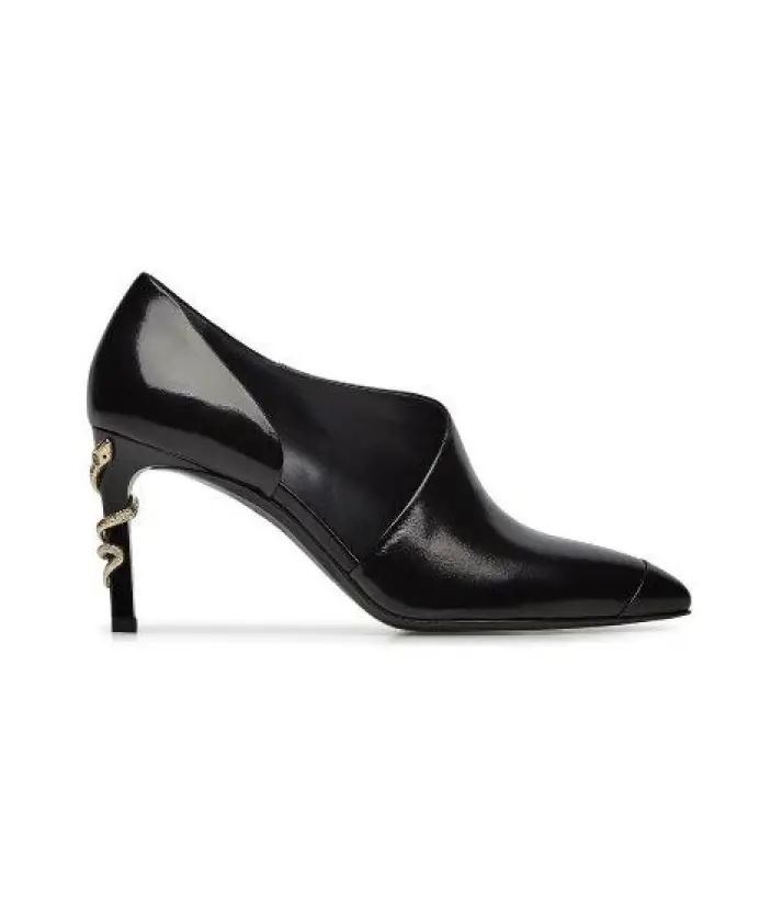 Подчеркните свой стиль с помощью этих соблазнительных и изысканных туфель Fabi. Женственный дизайн с острым носком, каблук-шпилька высотой 110 мм и деталь в виде змеи из золотистого металла. Изготовлен из телячьей кожи черного цвета.