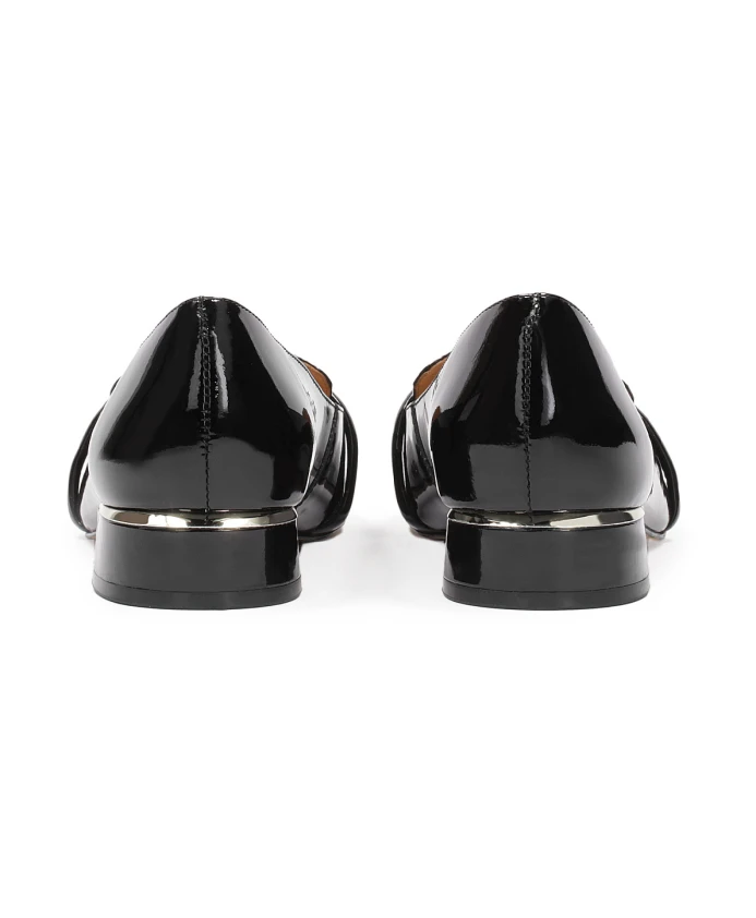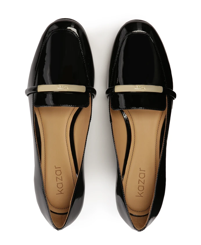 Черные туфли сочетают в себе элегантность и комфорт, создавая гармоничную композицию, достойную восхищения. Патентованная кожа, излучающая утонченность и изысканность, добавляет уверенности, а плоский каблук обеспечивает устойчивость и комфорт в течение всего дня. Золотая пластина с логотипом Kazar, незаметно расположенная на верху, является символом престижа. Это не просто украшение, а проявление неповторимого стиля и ценности красоты в каждой детали. Подкладка из овчины обеспечивает ногам ощущение комфорта, которое сохраняется на весь день. Тонкая кожаная подошва отличается долговечностью и эстетической привлекательностью.