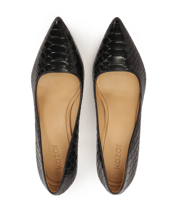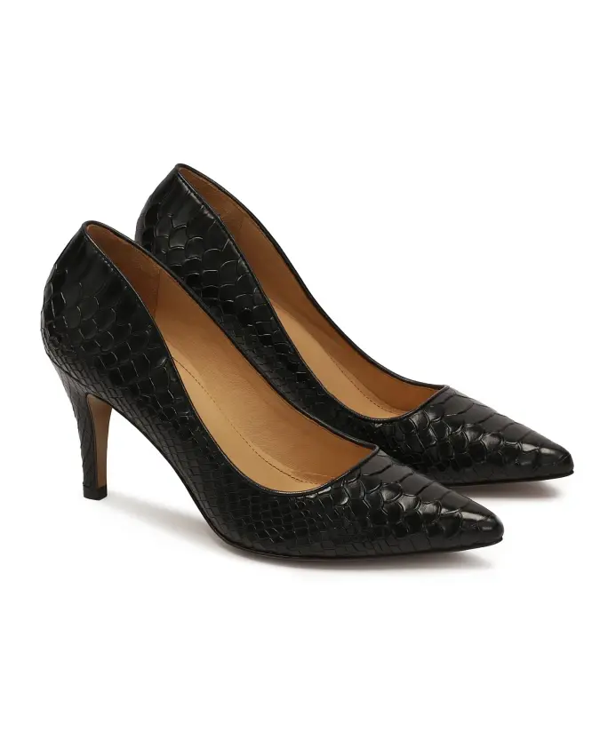 Черные туфли-лодочки из натуральной кожи с тиснением, имитирующим кожу змеи, – настоящая дань бессмертной классике и утонченному стилю. Каждая чешуя точно прорисована, создавая поразительную текстуру, которая притягивает взгляд и придает обуви исключительную глубину. Черный цвет и классический крой придают им универсальность и позволяют органично вписываться в самые разные стили, как формальные, так и повседневные. Высококачественная кожа адаптируется к ноге и обеспечивает оптимальную поддержку и комфорт в течение всего дня. Крошечная кожаная подошва отличается долговечностью и эстетической привлекательностью. Подкладка из полуанилиновой овчины обеспечивает исключительный комфорт благодаря отличным свойствам поглощения влаги.