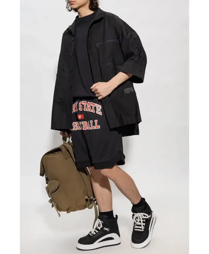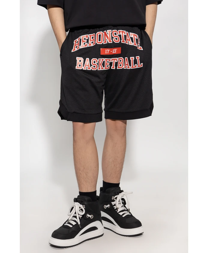 Черные шорты от Heron Preston. Эта пара застегивается на шнурок, имеет принт, два передних кармана, нашивку с логотипом сзади и ребристые манжеты. Размеры модели Рост: 193 см. Грудь: 95 см. Талия: 82 см. Бедра: 93 см. На модели размер одежды: M.