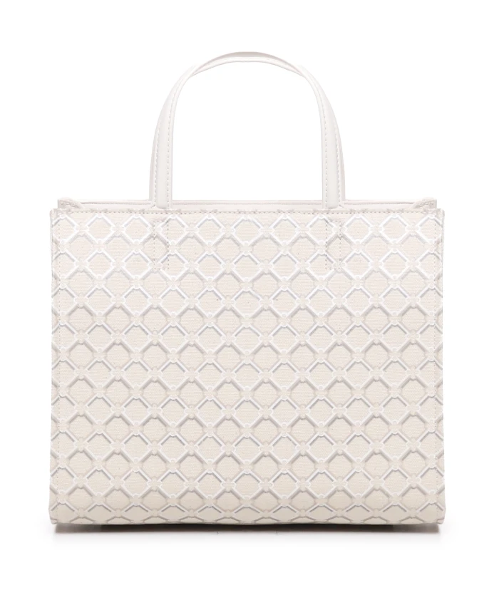 Подчеркните свой стиль с помощью этой шикарной сумки V73 с геометрическим принтом и надписью спереди. Сумка доступна в свежем белом цвете и изготовлена из 100% PL-материала. Имеет застежку-молнию, съемную ручку, размеры 24,5х15х30 см.